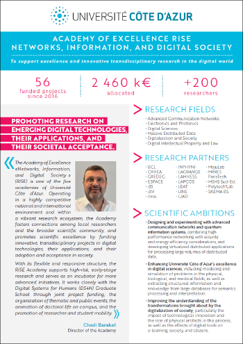 L'Académie "Réseaux, Information et Société numérique" est l'une des cinq Académies d'Excellence financées par l'IdEx d'Université Côte d'Azur.