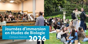 - Journées d'Immersion en étude de Biologie 2026Les 05 et 12 Mars, l'EUR LIFE, le BDE Sciences Valrose et le service Sciences & Société accueillent des étudiants du secondaire pour des Journées d'Immersion dans les Etudes de Biologie, sur la campus Valrose.