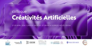 - Colloque Créativités ArtificiellesDu 27 au 29 avril 2026, le Centre XR2C2 organise un colloque de trois jours sur le lien entre création et IA en collaboration avec l'Université de Montréal (CRIHN), EFELIA, le Sic.Lab et la Ville de Nice.
