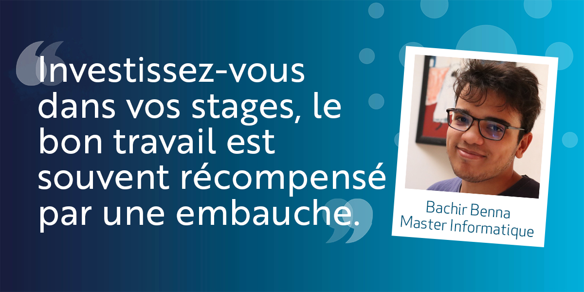 Mon conseil pour les étudiants : investissez-vous dans vos stages, le bon travail est souvent récompensé par une embauche !