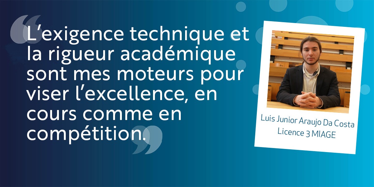 Je suis Luis-Junior Araujo Da Costa, actuellement étudiant en Licence 3 MIASHS parcours MIAGE et vice-champion de France de la 48ᵉ édition des WorldSkills, dans la catégorie Solutions logicielles pour entreprise.